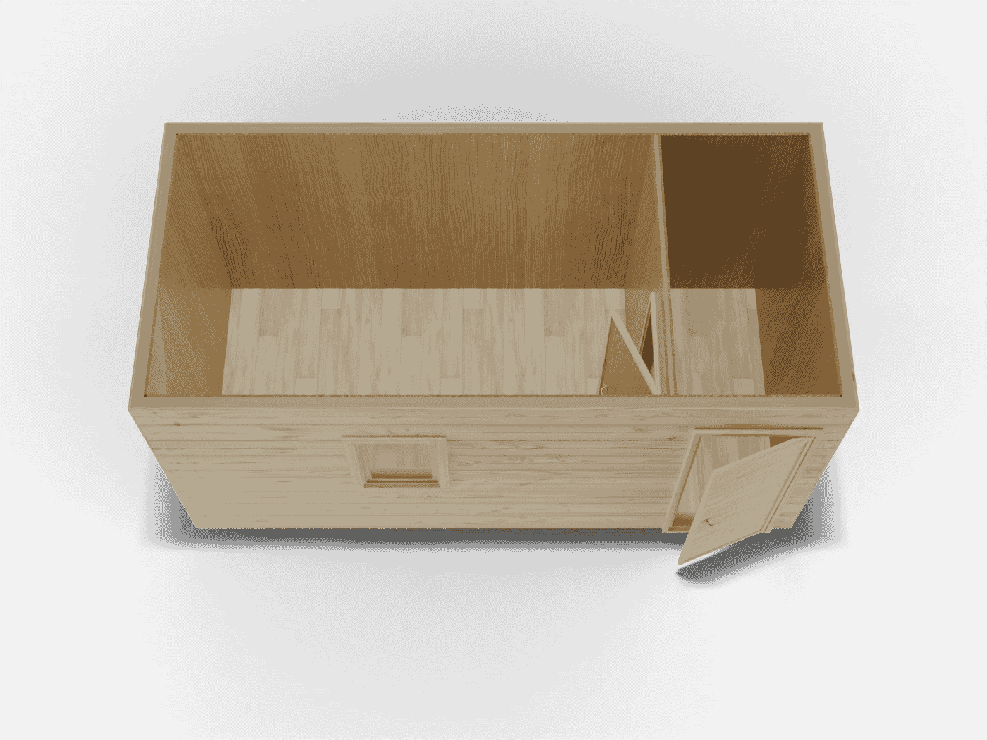 Дно: доска обрезная 25х100 мм, не обработана антисептиком, с шагом 20 см, пароизоляция (при наличии утепления в комплектации)
