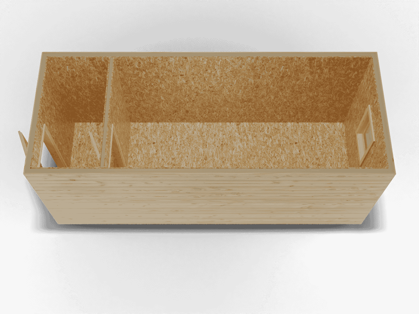 Дно: доска обрезная 25х100 мм, не обработана антисептиком, с шагом 20 см, пароизоляция (при наличии утепления в комплектации)