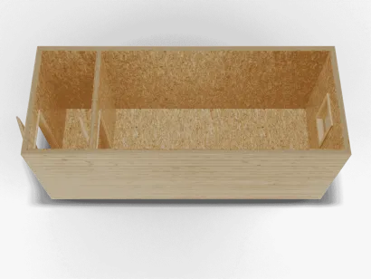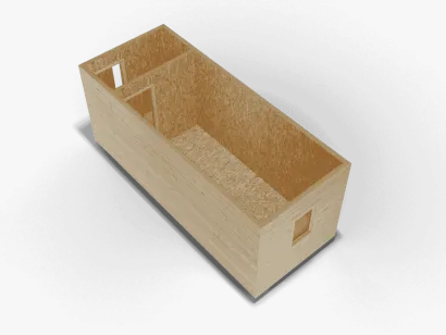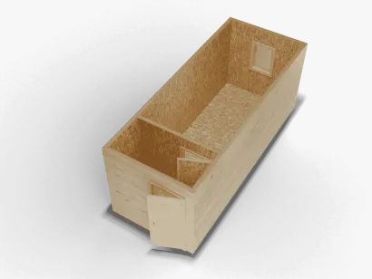 Бытовка размером 6 x 2,4 x 2,4 метра — это функциональное и комфортное решение для дачи, строительного объекта или временного проживания. Внешняя отделка из вагонки придает конструкции привлекательный внешний вид, а также обеспечивает защиту от атмосферных воздействий. Внутри отделка из ОСБ создает надежную и прочную основу, а одна перегородка позволяет удобно разделить пространство на зоны, что добавляет дополнительный комфорт.