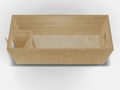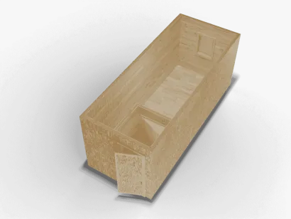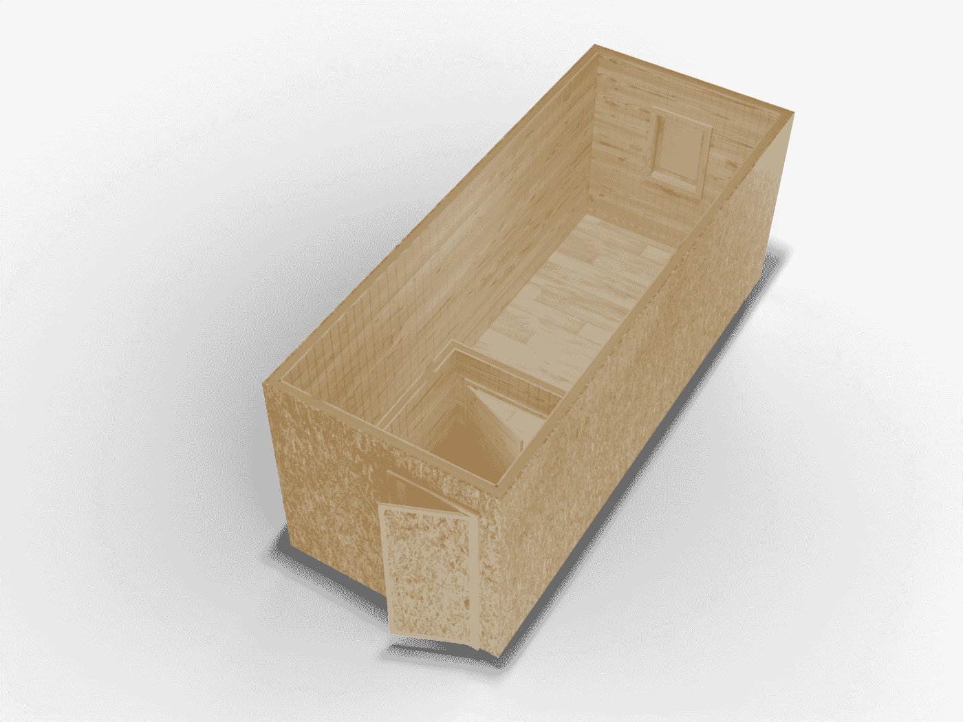 Деревянная бытовка с тамбуром размером 6 х 2,4 х 2,4 метра сочетает в себе практичность и комфорт благодаря грамотно подобранным отделкам. Внешняя отделка из ОСБ обеспечивает надежную защиту от внешних воздействий, является влагостойкой и устойчива к механическим повреждениям, что делает бытовку долговечной и устойчивой к неблагоприятным погодным условиям.