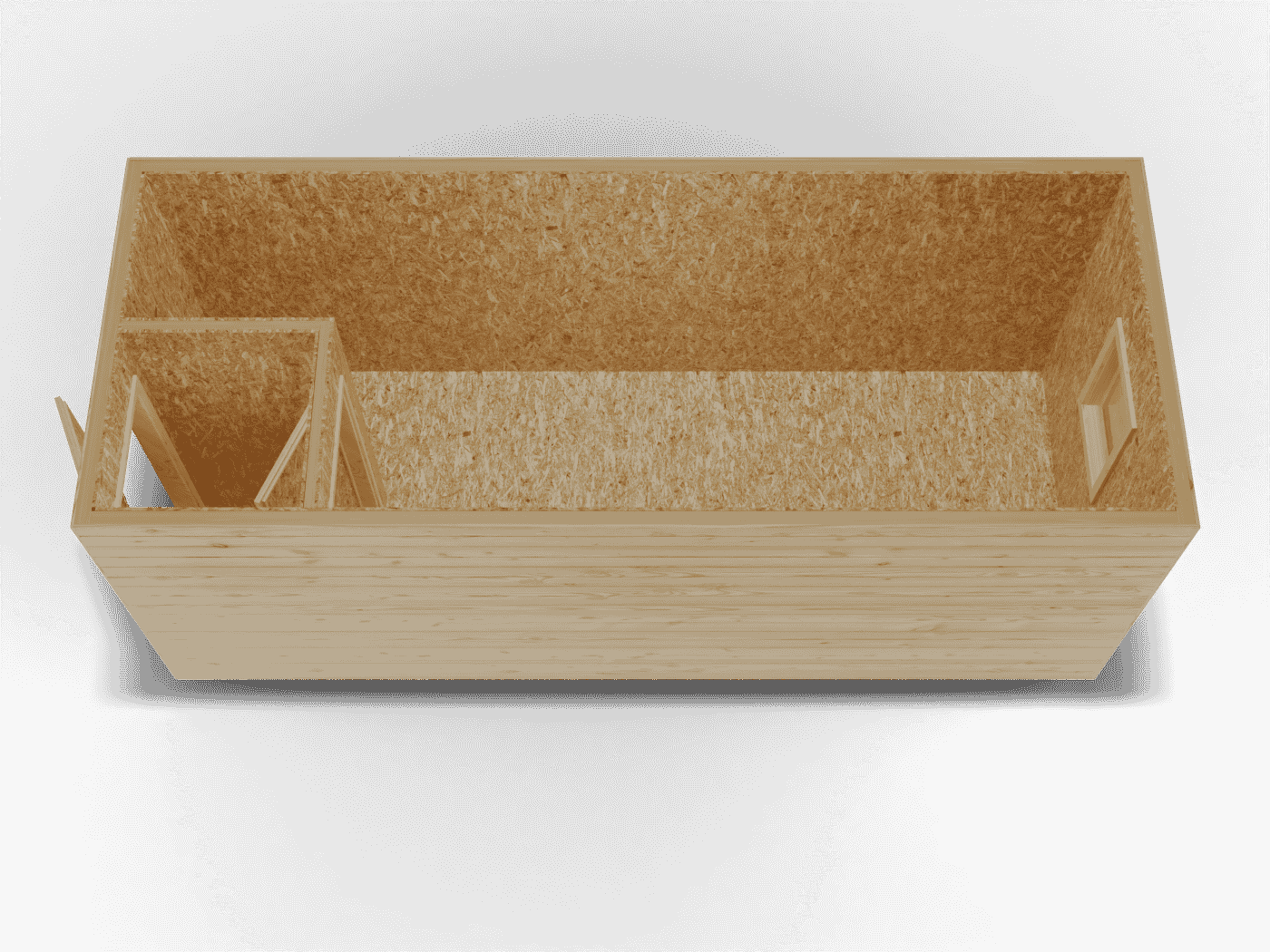 Дно: доска обрезная 25х100 мм, не обработана антисептиком, с шагом 20 см, пароизоляция (при наличии утепления в комплектации)