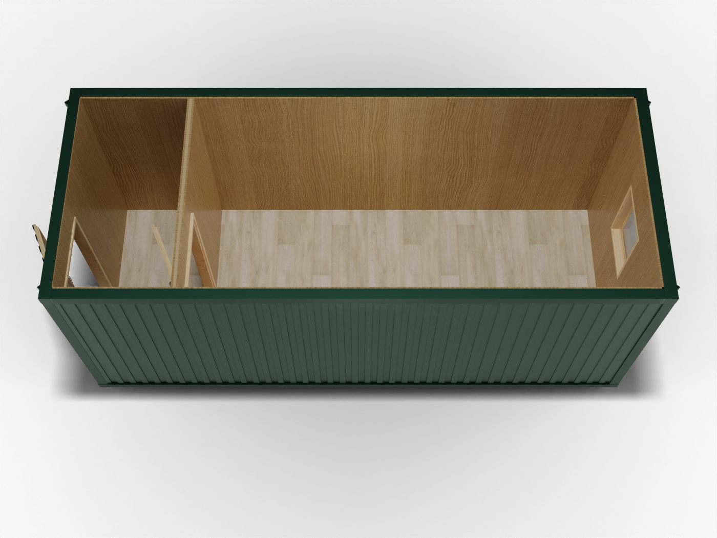 Металлическая бытовка 6х2,4 с перегородкой, цветной полимерный профнастил, МДФ с электрикой