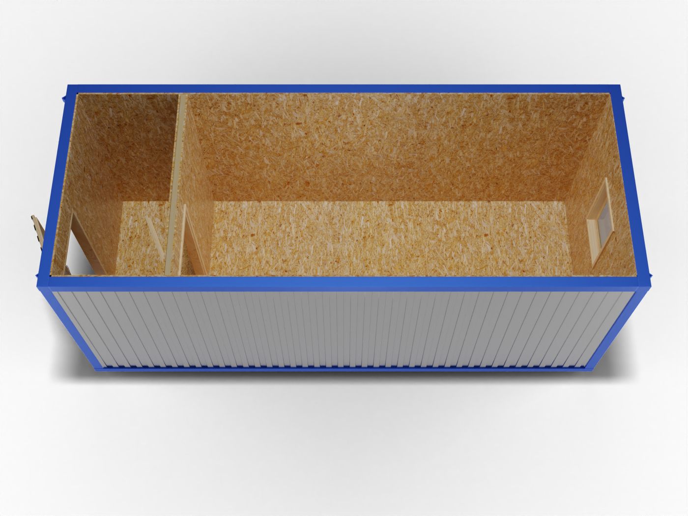 Металлическая бытовка 6х2,4 с перегородкой, ОСБ с электрикой