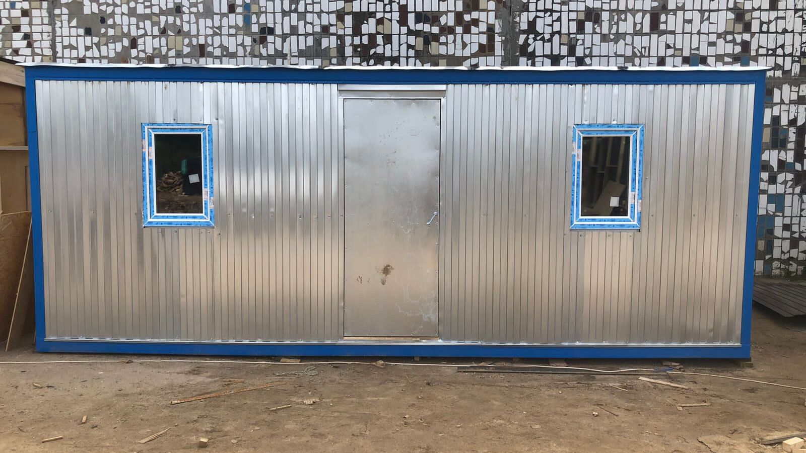 Металлический каркас, две перегородки, 2 окна ПВХ, внешняя отделка оцинкованный профлист